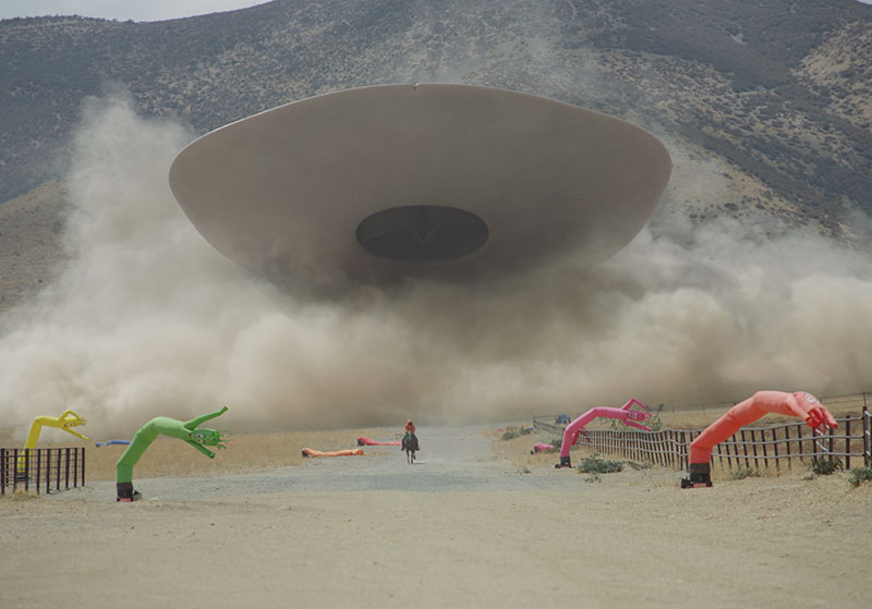 The artists’ primary challenge was creating the alien. Initially hidden behind the clouds, this creature-character undergoes a transformation in the story and evolves from a space ship-like saucer into a full-blown, massively large, alien entity that wreaks havoc across the ranch. The team’s first task was fully acquainting themselves with the alien, which the protagonists name ‘Jean Jacket’ after a horse they had grown up with on the family’s ranch.