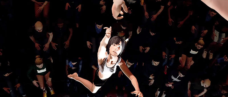 Within the virtual environment, the key members of the production were able to take their camera ‘down there’ in the space with the crowd and then ‘up there’ with the Acrobat, using the virtual camera to shoot from all around the environment, choosing the best sides to shoot from at particular moments, all the while looking up and down through the camera.