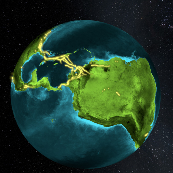 | Left: Bird migrations follow the seasonal abundance of food seen in this global productivity visualization. Right: Travel patterns of modern human populations occur on timescales much more rapid than the ecological systems of the natural world. |