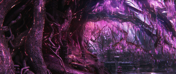 “When we joined the production, the design of the Tree of Life and its surrounding cavern environment were still unclear in the production’s vision, which gave our team a chance to work on the design of all of them. Starting with some initial previs, DNEG helped develop concept art to visualise a tree of great age and a majestic quality,” Chris said. Many kinds of trees were considered as reference – South American trees, of course, but also Asian banyan trees and baobab trees, which are African and sometimes called the Tree of Life. The artists aimed for gnarled looks, and bark textures that would allow incorporating the Tree’s magical veining.