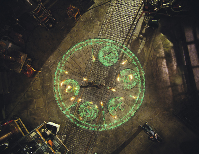 Black Slime The sorcerer Horvath places the Grimhold on top of a fountain filled with CG water, stops the fountain and magically cracks the container open with his cane. Black slime pours out, created as a fluid simulation by One of Us. It rises and grows, with CG fluids composited over the surface to give it the look of an egg sack holding all things evil writhing under the surface. When it finally bursts open and falls, we see Veronica standing there, possessed by Morgana. A new sequence then begins as she begins casting fire over the city from the fountain. Double Negative focused on creating this fiery energy that travels through the streets. A helicopter unit took a collection of aerial views of Manhattan, which the team would composite the fire into, while on the ground, a camera car captured more shots, moving up Broadway and down side streets with a camera strapped to the front and a 20K light to create some interactive lighting as it drove past. Fiery Energy “It was a creative challenge more than anything else. Technically it was all within reach. We needed to establish the look of fiery lines and symbols in the sky that were readable in wide aerial shots as well as close ups where it bounced off satellite dishes. And because it was fiery energy rather than just fire, we wanted to avoid making it look explicitly like fire to help establish the story point that it was something magical that normal eyes wouldn't see – after all, this was the fire that was going to form the magic Pentagon over Manhattan. “We ended up with a fireworks look, very hot, energetic and unstable. Senior FX TD Tim Riley developed a Houdini set up based on particles and sheets of geometry, with a leading fiery ‘head’ made out of combusting energy. Render times were relatively low, making it possible to quickly get a selection of elements into compositing and allow the look to develop further in the comp. This enabled the look of the fiery energy to evolve in the comp without the underlying setup needing to change, and without the need to re-simulate complex fluid dynamics.” They relied again on Squirt, their fire and fluid simulation software. Sequence supervisor Gavin Graham gave a presentation on Squirt at SIGGRAPH this year, just as this film was being released. Spectral Morgana “Nevertheless, she still had to be recognizable as the same character, played by Alice Krige, as earlier in the story with facial detail you could read and defined hands that you could follow. We shot Alice on set, meaning we could base our ‘spectral Morgana’ on complete plates of her real performance, not on character animation. But this also demanded very accurate body tracking, including a cloth rig track to accommodate her long trailing black dress and sleeves, and facial animation tracking, requiring a facial rig. This gave us a fully rigged digital double of Alice doing exactly what the live footage was doing but allowing us to turn her into particles.” In the early concept drawings, Morgana appeared as a hideous witch. But the director and producer had liked Alice Krige’s performance so much that they wanted the team to both give her an otherworldly quality to emphasise her magical powers, while maintaining the readability of her performance. Particle Management But using particles alone didn’t give the character enough complexity and density. When the particles separated, you could see though Morgana. Elements had to be added to the interior. First, a shining, pulsing core was placed in her centre by raytracing against a fluid simulation. Then a swarm of writhing fishlike creatures was created and also set up using the procedural framework of Houdini, to be able to apply it across a large number of shots. 2D Sequence Co-Supervisor Ian Simpson was responsible for putting these various components together, using Shake to composite her into the scene. Interactive LEDs on Morgana’s hands in some of the shots, representing the plasma she was shooting, complicated the work. Depending on the timing of the plasma balls, he had to reconstruct a clean plate through the CG to prevent the blue plasma from interfering with her form. Getting the right balance between swirling and tighter layers of particles, especially on the face, was still a problem, requiring many masks, texture and lighting passes, and she also needed to be scaled in 3D in many shots. Real Physics “These worked out well. We had a ‘cool’ toned light for the fire balls and a hotter blue light for the plasma balls introduced later. Actually, the light on this set was mostly real, which is essential to properly integrating the CG elements, and only needed a little enhancing later. We also discussed working with the fireballs with the actors to make sure the performance and the effects were aiming for the same looks, and because the director continued getting new ideas on set, this sequence became more of a post-vis exercise than previs.” Balthazar’s magical demonstrations are perhaps at their most potent when he scorches a huge fiery circle into the stone floor of the laboratory. On set, the shoot required one of the biggest special effects rigs of the show, using gas plumbing under the floor to form the magic symbols. These could produce fire of any colour and green was chosen. Balthazar stood at the centre, raised his arms and produced a huge rush of flames. Then the scene was shot again without Nick. “It looked quite effective, but needed some embellishment – the rig was smoky and although the flames were bright enough to blow out the frame, they weren’t really tall enough. The team eventually decided to replace the flames with CG but what really helped us was having the interactive lighting already baked into the plates. It was virtually all there for us. “Looking at reference material of oxy-acetylene welding was useful because these flames are hot, flickering, super-bright, and blow out the frame with lens flares and re